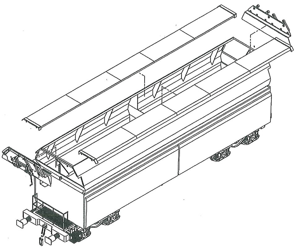 SELBENTLADENDER GÜTERWAGEN MIT PNEUMATISCH SCHLIESSENDEM UND ÖFFNENDEM DACH TYP WAP SERIE FALLS.