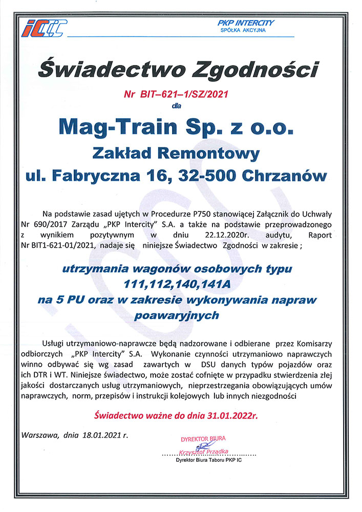Mag-Train Sp. z o.o. employs experienced and qualified railway staff who ensure timeliness, professionalism, safety, high quality of repairs and retrofits of the rolling stock.